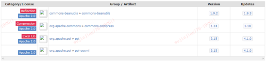 <!-- poi utils --> <dependency> <groupId>org.apache.poi</groupId> <artifactId>poi</artifactId> <version>3.15</version> </dependency> <dependency> <groupId>org.apache.poi</groupId> <artifactId>poi-ooxml</artifactId> <version>3.15</version> </dependency>