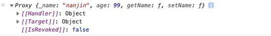 js的语法中没有private这个关键字来修饰私有变量,所以基本上所有的class的属性都是可以被访问的,但是在有些场景下我们需要使用到私有变量,现在业界的一些做法都是使用”_变量名“来”约定“这是一个私有变量,但是如果哪天被别人从外部改掉的话,我们还是没有办法阻止的,然而,当Proxy出现后,我们可以用代理来处理这种场景,看代码: