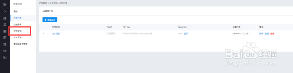 注册或登录百度账号,进入控制台,选择文字识别