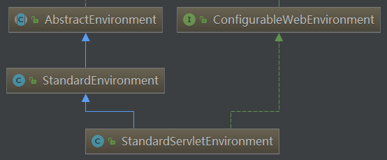 在 WebApplicationType.SERVLET web应用类型下,会创建 StandardServletEnvironment,本文以 StandardServletEnvironment 为例,类的层次结构如下