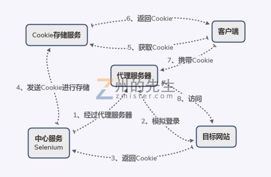 我们首先借助Selenium对目标网站进行模拟登录并不断维持登录状态,将登录成功和更新的Cookie上传给Cookie存储服务;