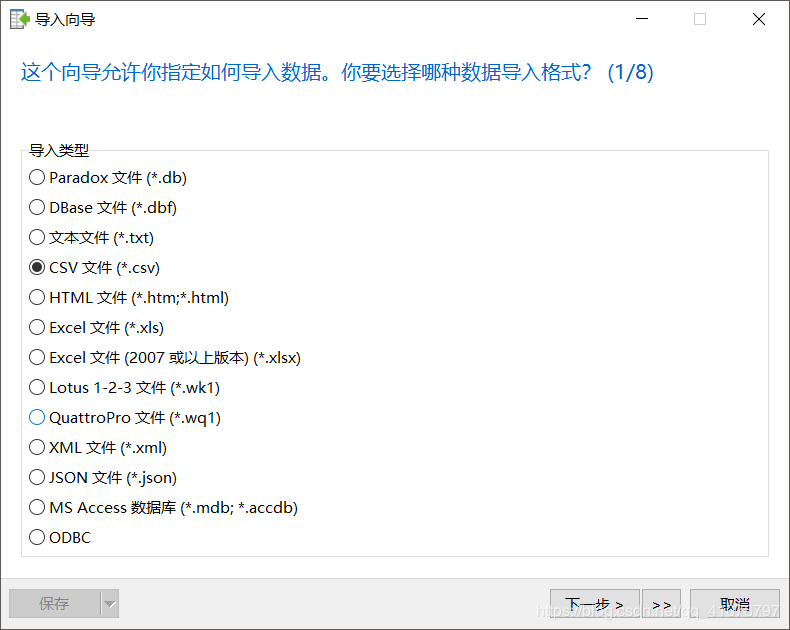 2.用Navicat进行导入:随便建立一个数据库,然后在表那里点击导入向导
