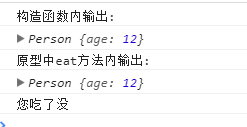 并且在Person 的原型对象上添加了一个eat 方法,也输出了一个this,