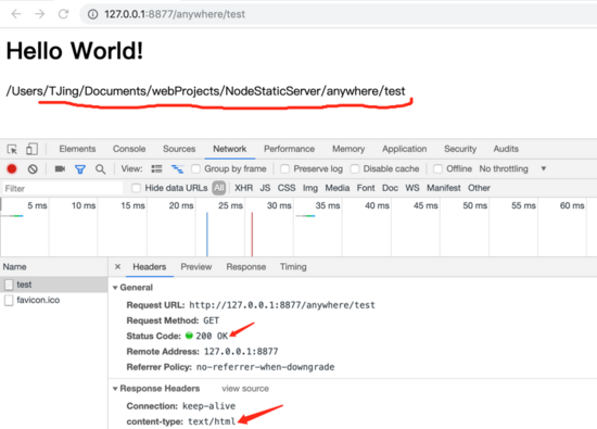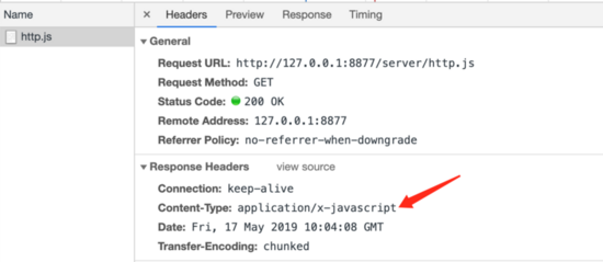 运行 server 服务器访问一个文件,可以看到 Content-Type 修改了:
