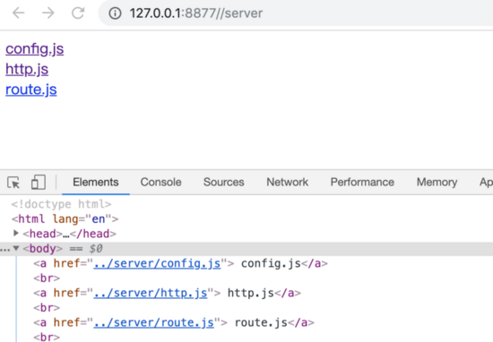 // server/http.js const http = require('http') const path = require('path') const config = require('./config') const route = require('./route') const server = http.createServer((request, response) => { let filePath = path.join(config.root, request.url) route(request, response, filePath) }) server.listen(config.port, config.host, () => { const addr = `http://${config.host}:${config.port}` console.info(`server started at ${addr}`) })