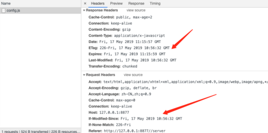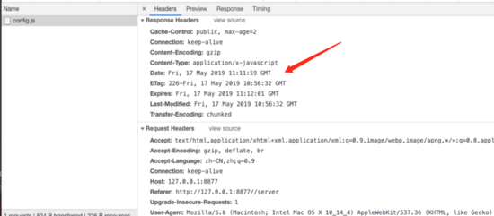 重启 node server 访问某个文件,在第一次请求成功时 Respond Header 返回缓存时间: