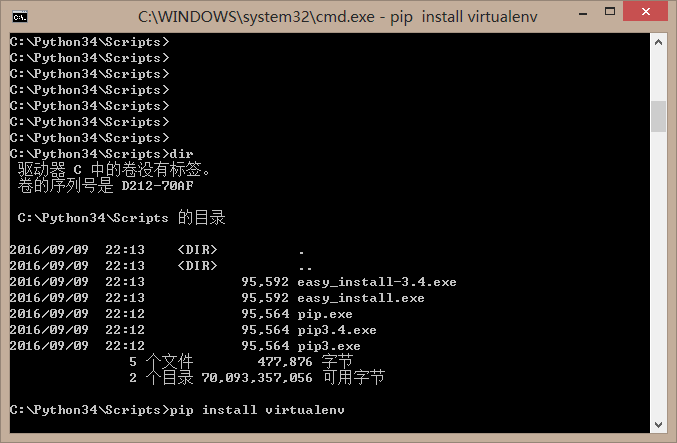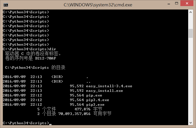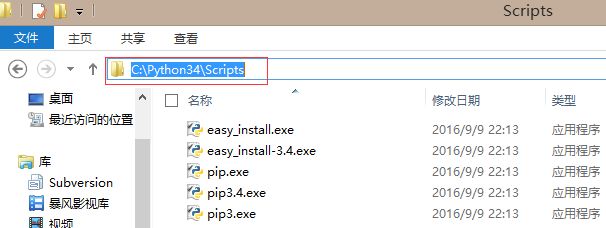 进入Python安装目录中的脚本目录,本文目录为C:\Python34\Scripts,截图如下所示: