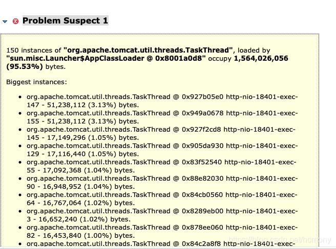 4,结合代码分析是请求外部HTTP连接没有设置超时时间,导致大量请求堆积,tomcat线程池满了,造成OOM。