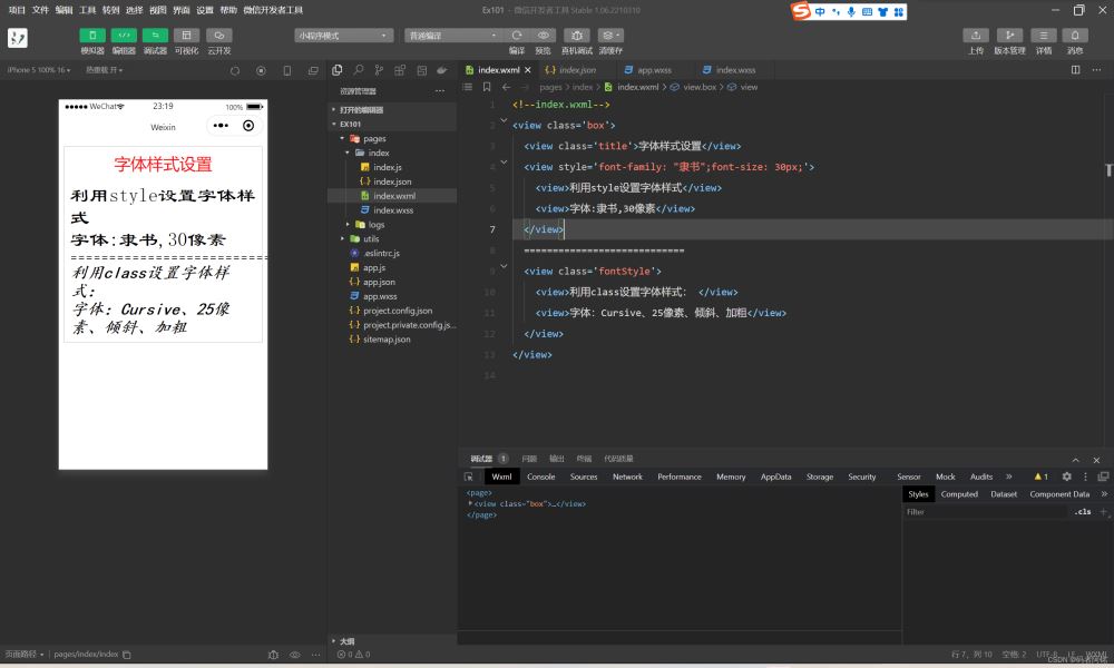 我们将在该文件中定义.fontStyle样式类,该样式类只能在index.wxml中被使用。