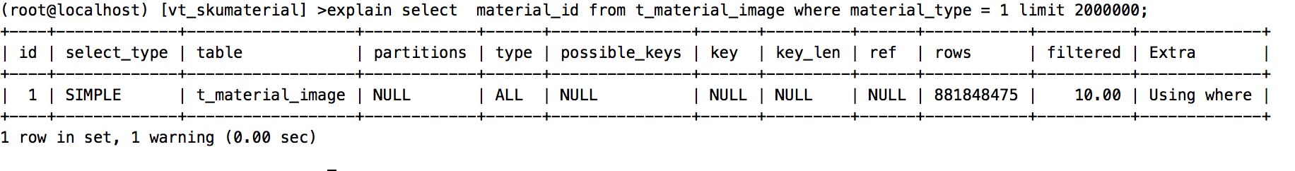 最容易想到的优化方式,就是给where条件的字段加索引,添加索引语句如下: alter table t_material_image add index idx_material_type (material_type);