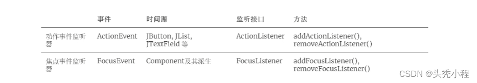 - 注册监听器以监听事件源产生的事件(如通过ActionListener来响应用户点击按钮)