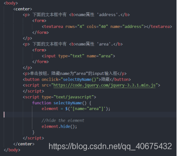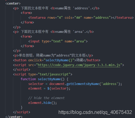 语法:selector = document.getElementsByName(‘nameOfElement’);element = $(selector);