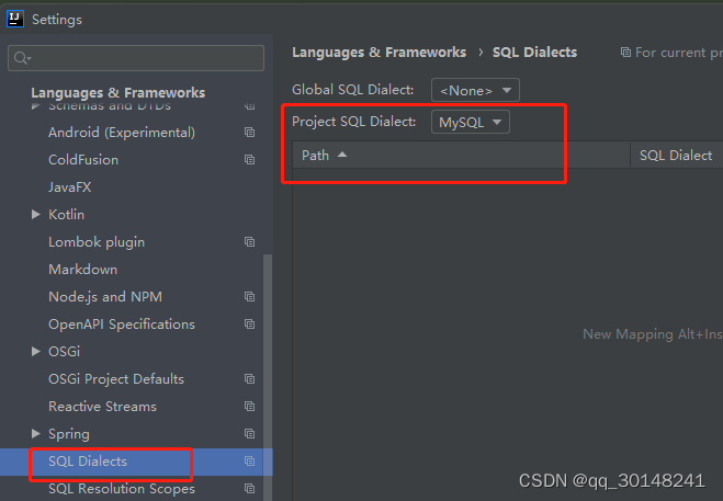 (2)第二种方法就是使用idea自带的功能来检查sql语法。但是需要手动配置: