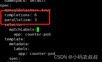 - 指定需要完成的数量,默认值为1,假设设置为3,需要有三个pod成功完成任务,这个job才算是完成;