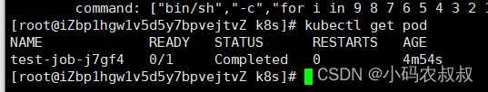 command: ["bin/sh","-c","for i in 9 8 7 6 5 4 3 2 1; do echo $i;sleep 3;done"]使用apply(或create命令)创建cronjob