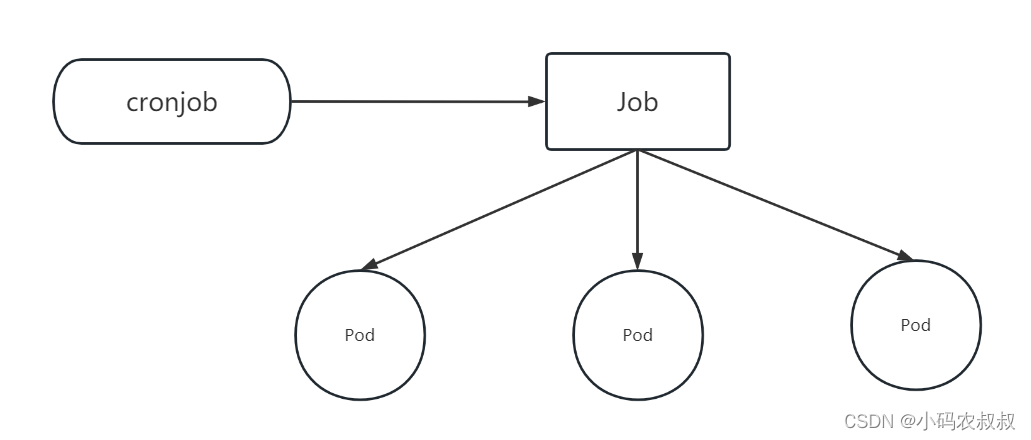 CronJob控制器以 Job控制器资源为其管控对象,并借助它管理pod资源对象,Job控制器定义的作业任务在其控制器资源创建之后便会立即执行,但CronJob可以以类似于Linux操作系统的周期性任务作业计划的方式控制其运行时间点及重复运行的方式。也就是说,CronJob可以在特定的时间点(反复的)去运行job任务。
