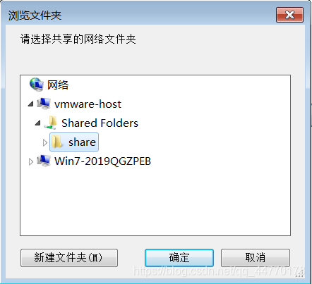 我的电脑——>映射网络驱动器——>浏览——>选择VMware-host——>选择前面设置的共享文件夹