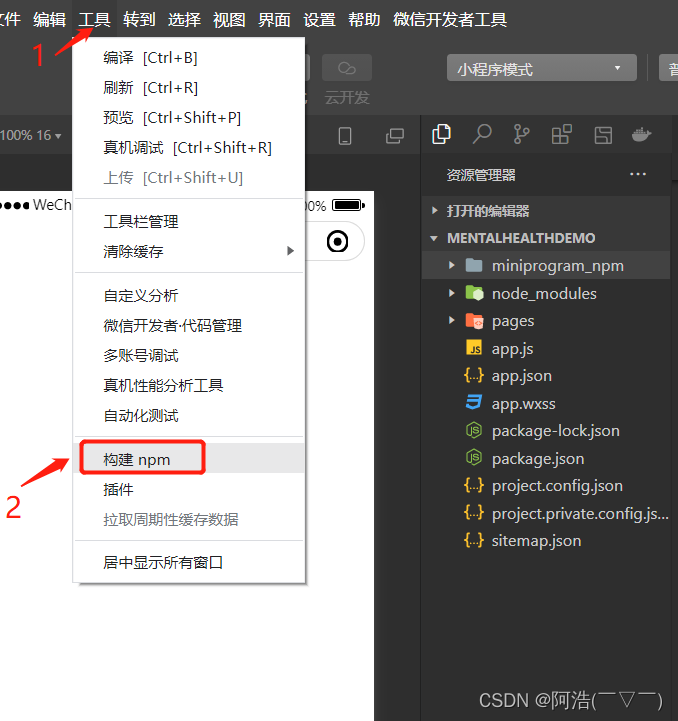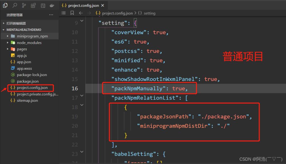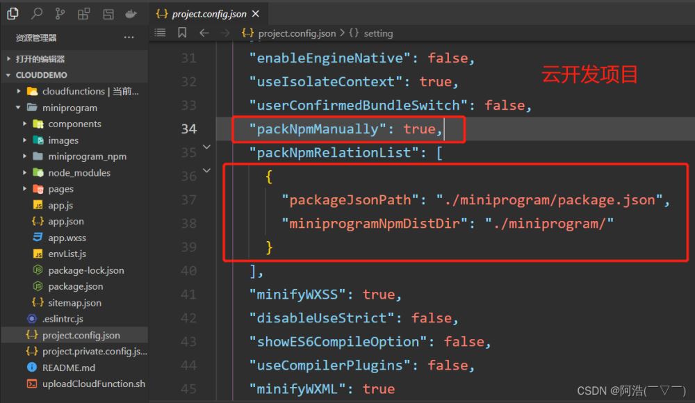 由于开发者工具创建的小程序目录文件结构问题,npm 构建无法正常工作,需要在project.config.json 中修改如下配置(普通项目和云开发项目修改的内容略有不同):