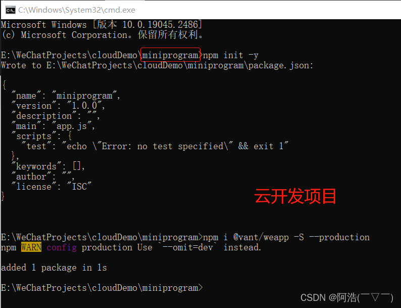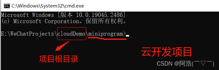 首先,在终端中打开项目根目录(注意:云开发项目要打开根目录下的 miniprogram 目录)