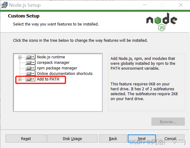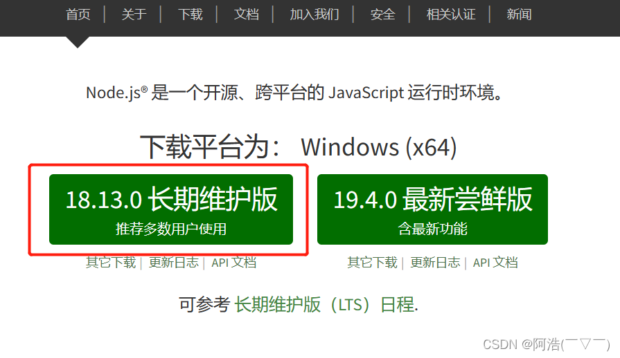 下载长期维护版的 node.js 安装包,然后安装一路点击Next,注意勾选上 Add to PATH 即可。