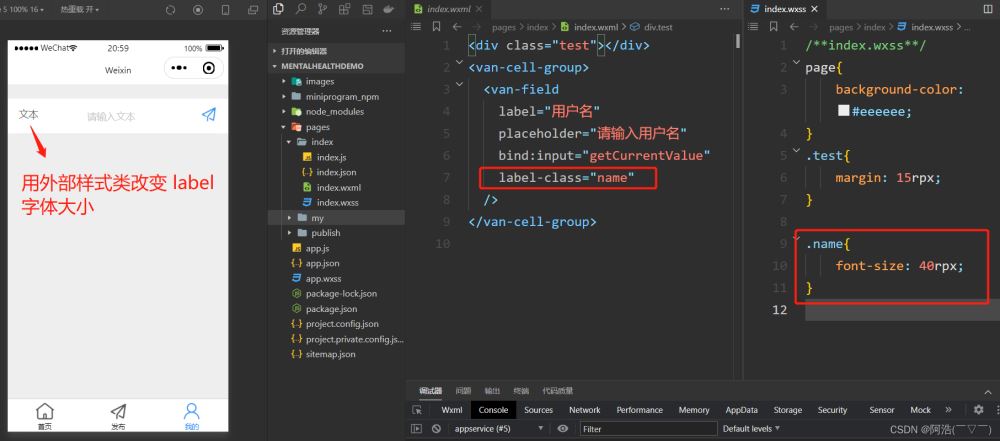 在 vant 组件中,我们添加的 class 样式一般不能生效,需要自己定义外部样式类使用。下面以 Field 输入框为例,利用 label-class 来改变左侧文本的字体大小。