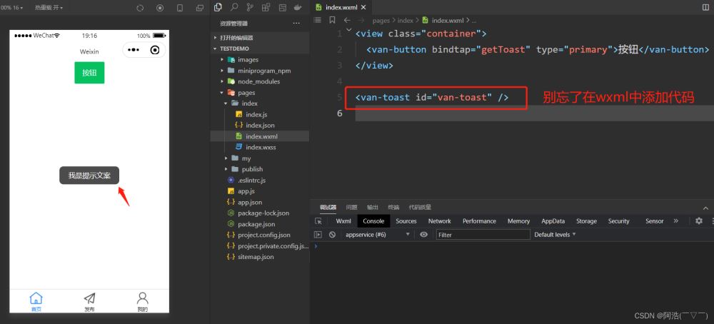 小结一下,Toast 的使用,需要在 json、js、wxml 文件中添加代码,千万别忘了在 wxml 页面内添加对应的节点。另外,Dialog 弹出框、Notify 消息提示的使用也和 Toast 类似,详细使用可以查看官方文档。