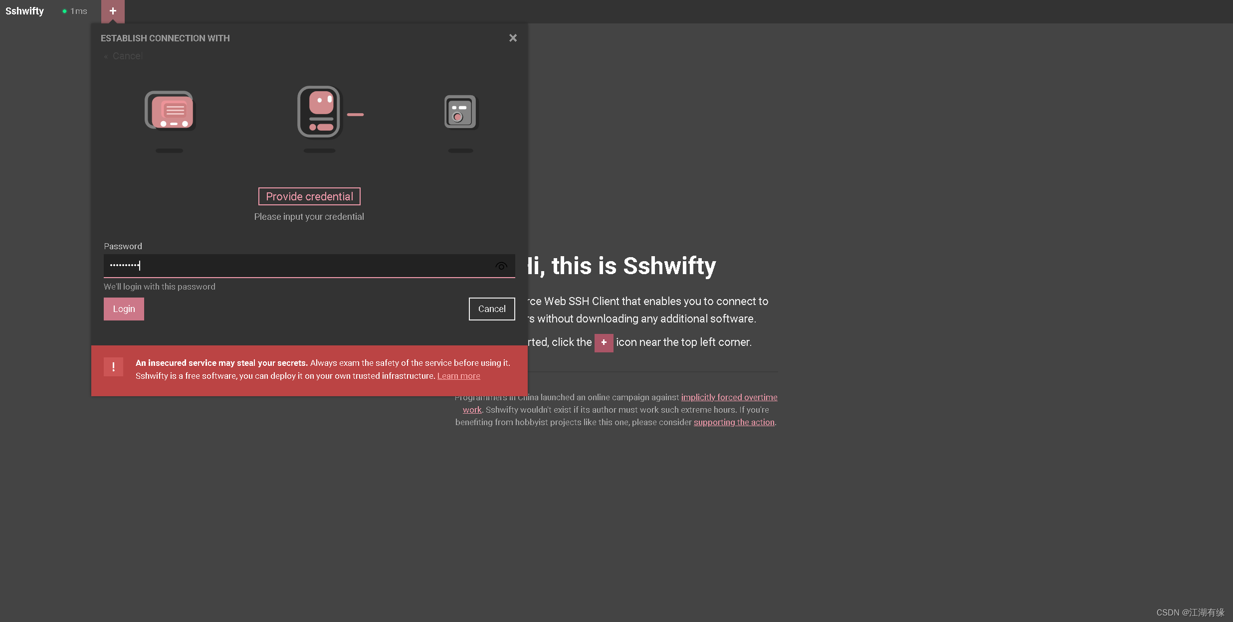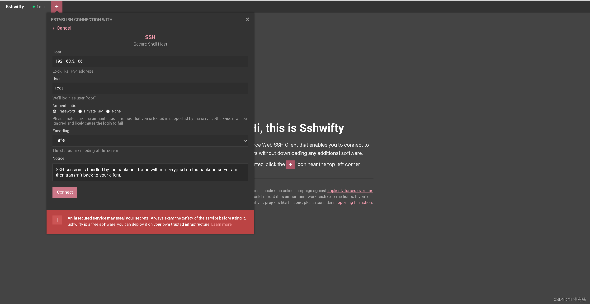 sshwifty是一款Web SSH & Telnet(WebSSH & WebTelnet 客户端工具。