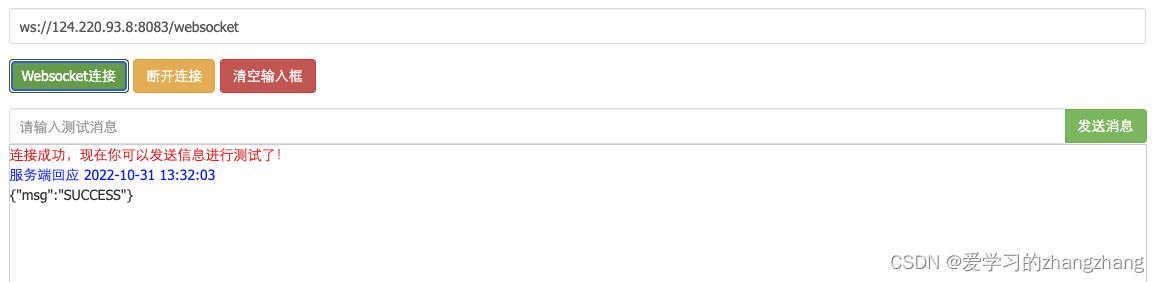 在网站中输入ws://ip:端口/webSocket工具类的前缀(ws://127.0.0.1:8080/websocket)