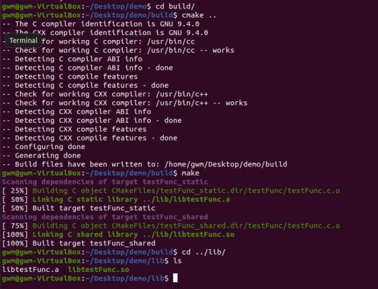 可以看到执行cmake生成的Makefile可以显示进度,并带颜色。再看下目录下的文件: