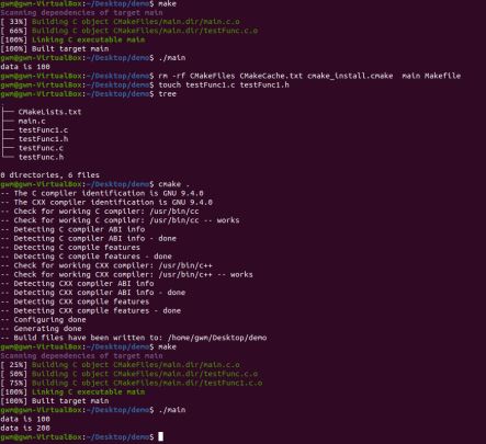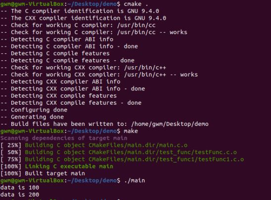 cmake_minimum_required (VERSION 2.8) project (demo) add_executable(main main.c testFunc.c)