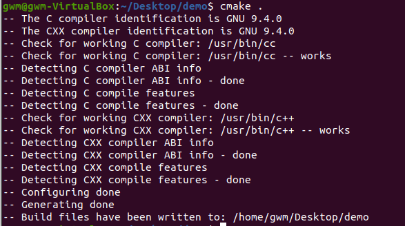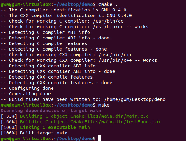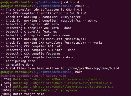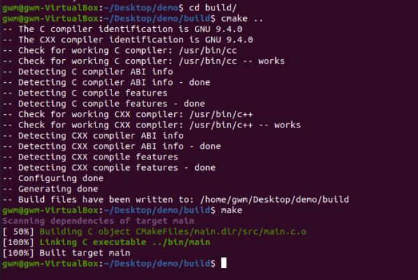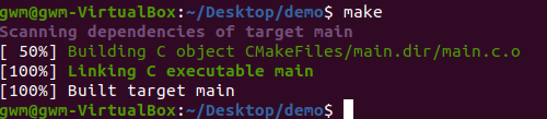 在终端下切到main.c所在的目录下,然后输入以下命令运行cmake: