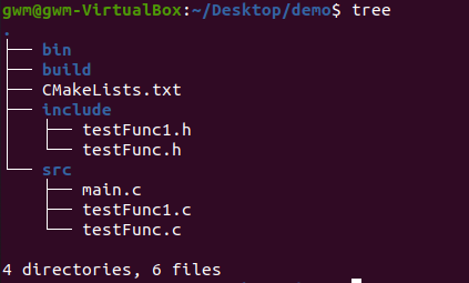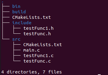 重新建一个工程目录,然后把上节生成的库拷贝过来,然后在在工程目录下新建src目录和bin目录,在src目录下添加一个main.c,整体结构如下: