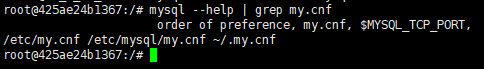 #进入docker容器,mysql为刚安装的容器名称 docker exec -it mysql或者mysql容器ID /bin/bash # 查找Docker内,MySQL配置文件my.cnf的位置 mysql --help | grep my.cnf # 会输出数据文件的存放路径 /var/lib/mysql/ show variables like '%datadir%';