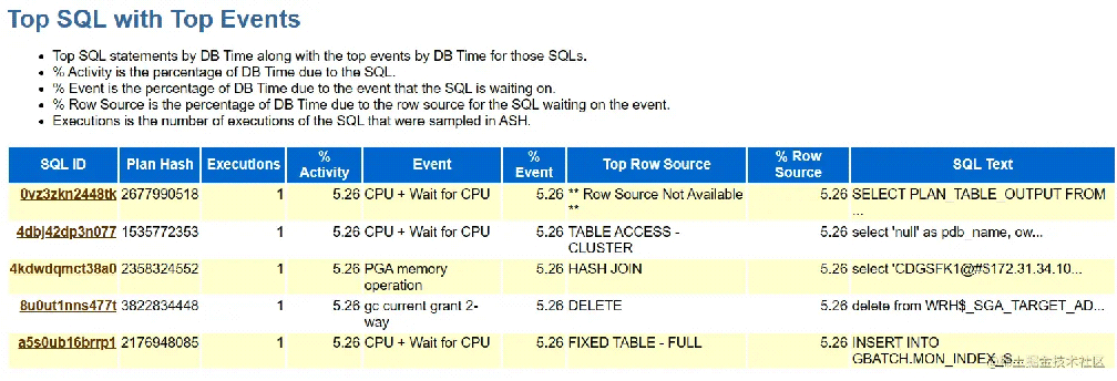 最后关键点a:下面报告里的sql_id与事件与v$active_session_history里查出来的结果相同,进一步证明事件与此SQL的关联性。