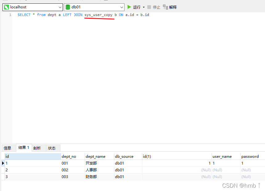 所以我关联查询,可以直接关联我本地sys_user_copy表从而查出来。