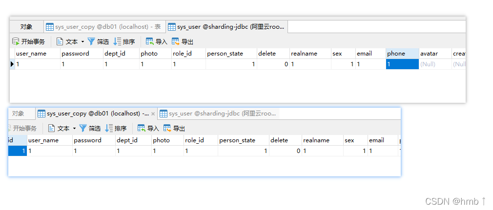 建好后,我本地sys_user_copy的表里面的数据是映射远程的表的数据