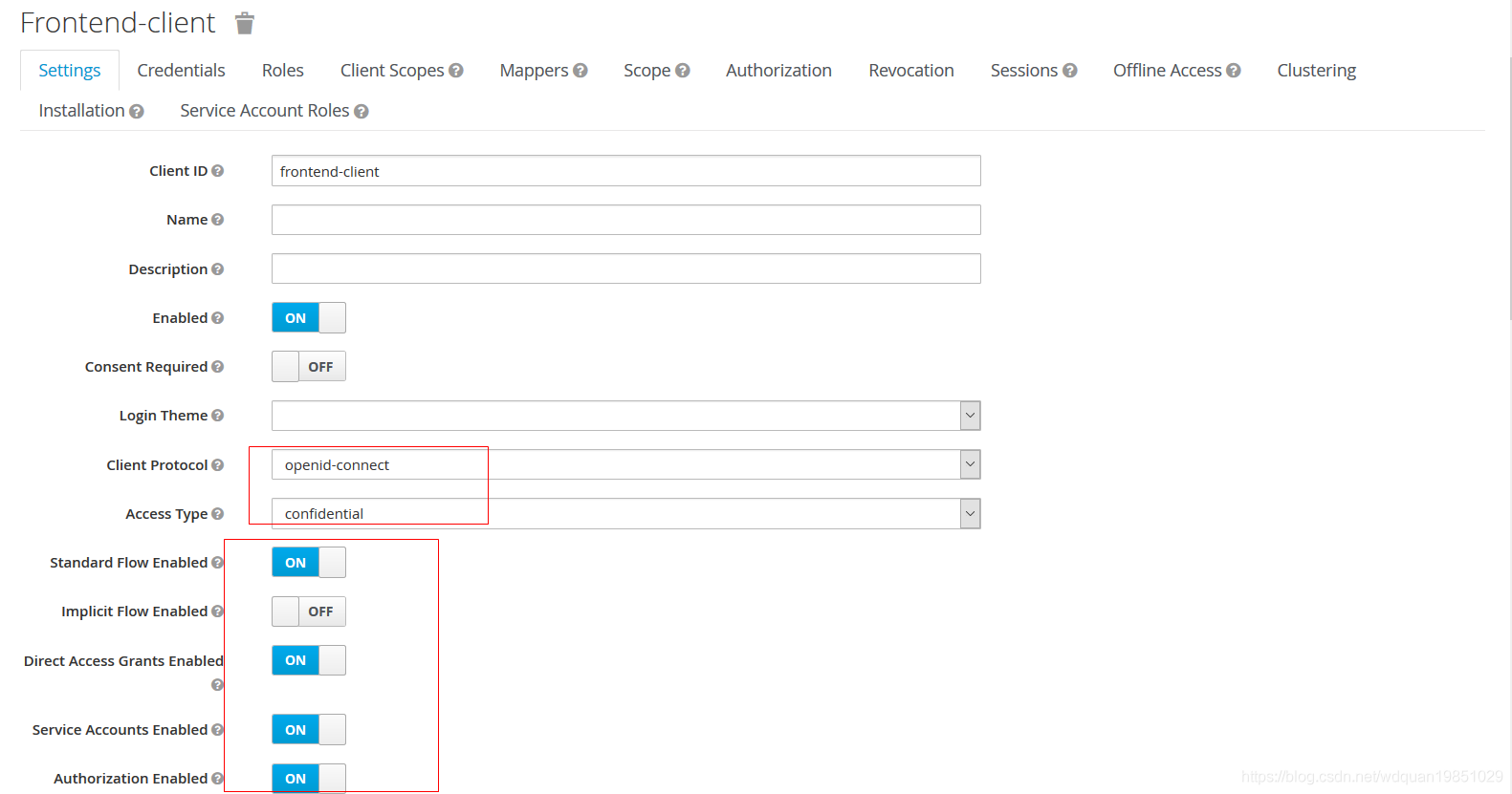 如果想要在登录时跳转到keycloak的登录页面,那么Access Type 使用confidential方式,这也是实现SSO功能必须的。