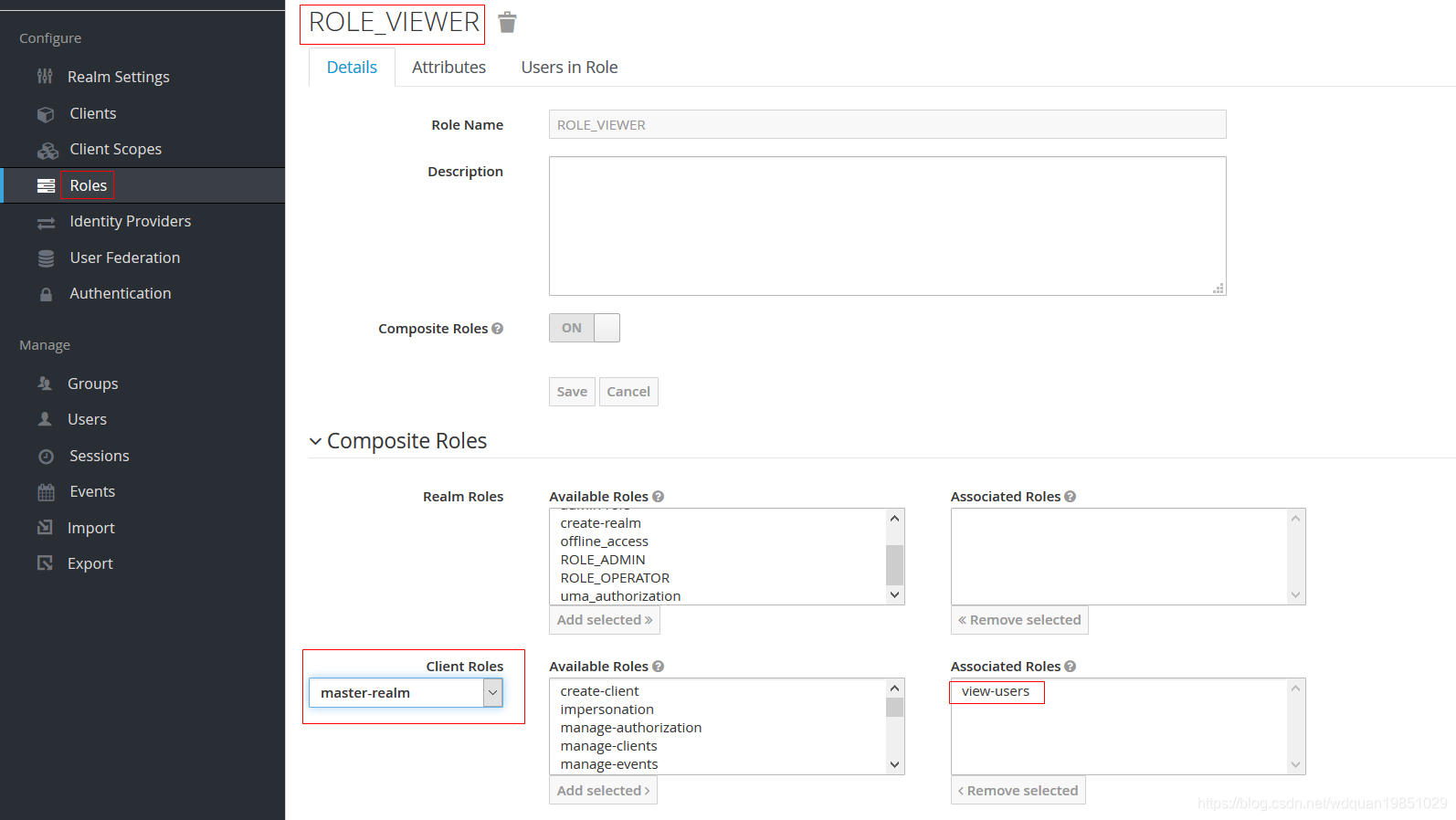 既然没有权限,那就加上权限,用户cctf_admin已经拥有了一个叫做ROLE_VIEWER的Realm Role,需要给这个Realm Role ROLE_VIEWER增加权限,起码要有一个叫做view-users的 Client Roles。