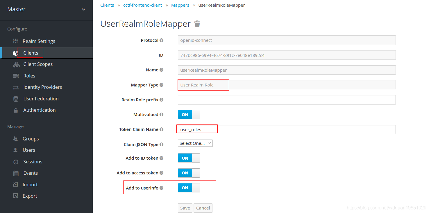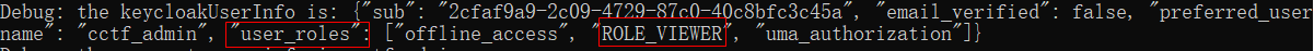 {"sub": "1b535469-2d7c-45ef-bdd5-4b9343b91f9b", "email_verified": false, "name": "bruce wang", "preferred_username": "cctf_admin", "given_name": "bruce", "family_name": "wang", "email": "4xxxxxxxx@qq.com"}怎样才能拿到role信息呢?可以通过在client中配置"User Realm Role" Mapper的方式。