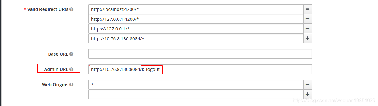 JBoss keycloak在client设置中提供了一个管理url(即上面的Admin URL),用户可以通过这个属性进行设置,在登出推送事件或其他事件上做出反应,例如发生应用登出事件时,会触发Admin URL中配置的请求,Keycloak会对这个请求进行处理