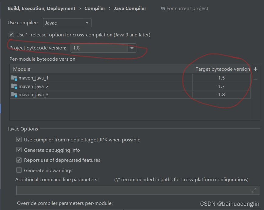 因为我maven_java_1没有配置<properties></properties>,所以setting中 Target bytecode version默认为1.5