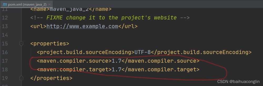 </properties>配置的版本号一致.若你没有在pom文件配置该标签体内容,Target bytecode version默认为1.5。以我为例