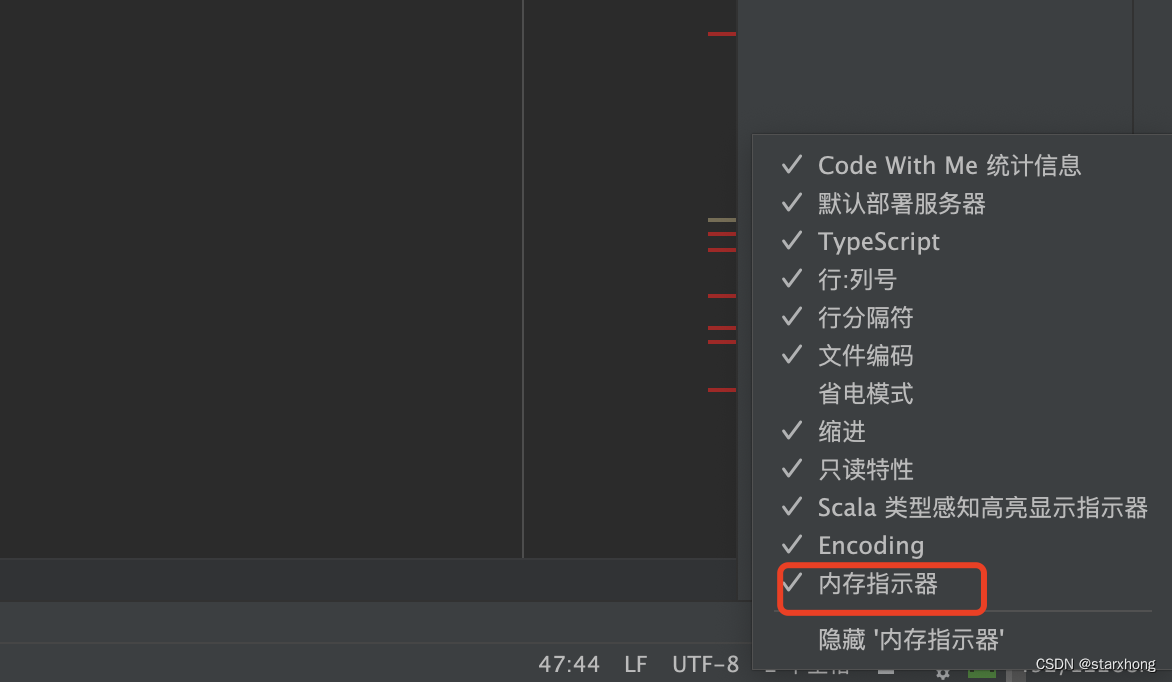 内存指示器:IDEA右下角打开内存指示器,看卡顿的时候是不是打满了