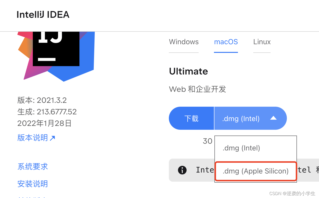 然后去idea官网再下一个就好了,估计我当时下错就是没点那个下拉按钮。。。。