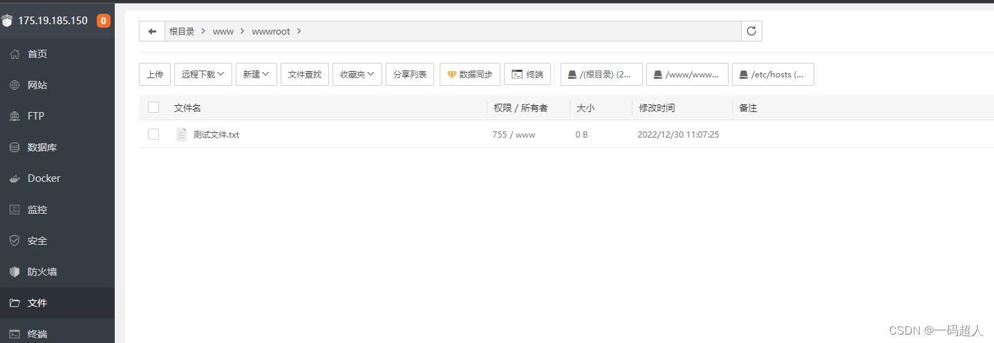 因为本地D://baota映射了容器中宝塔的/www/wwwroot目录,方便项目部署及同步。