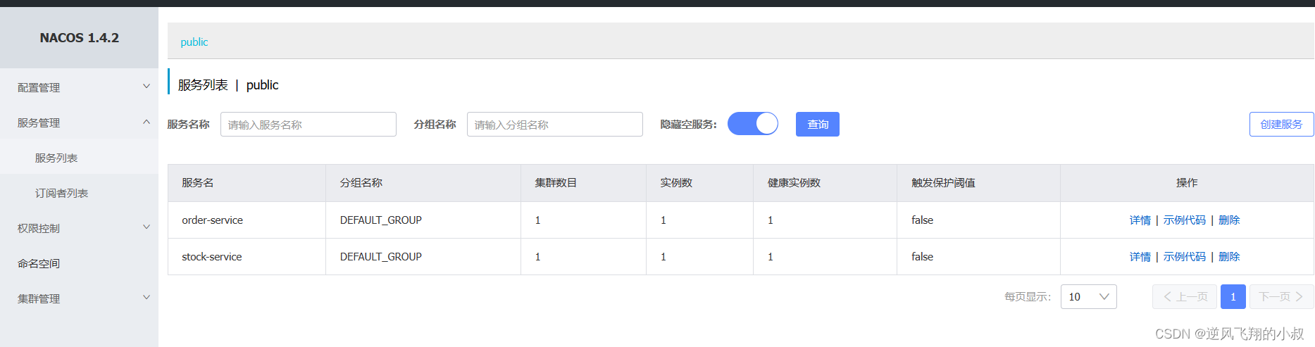 启动完成之后,再次检查nacos的服务列表,可以发现上面正是两个工程的服务名;