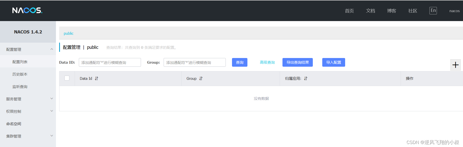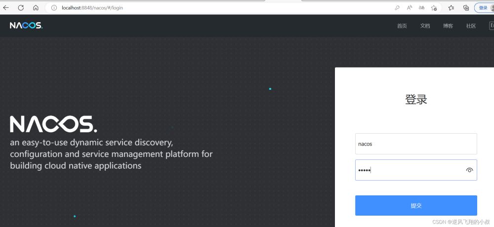 启动成功之后,按上图中地址访问nacos的客户端控制台,默认登录用户名和密码:nacos/nacos