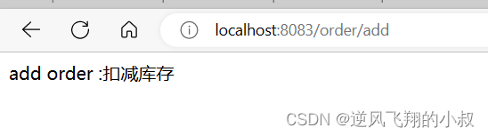 浏览器调用order模块的下单接口:localhost:8083/order/add,看到如下效果,说明通过nacos实现对微服务的调用就成功了