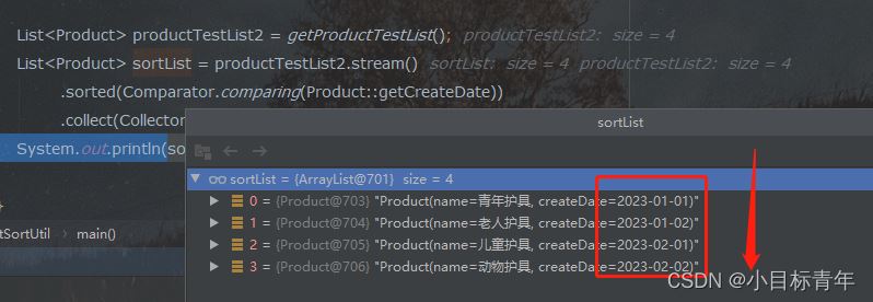如果需要倒序,则加上 reversed 在 .comparing(Product::getCreateDate) .reversed()