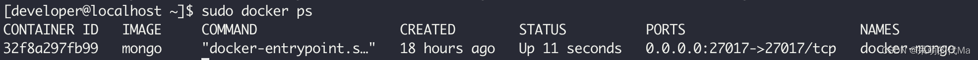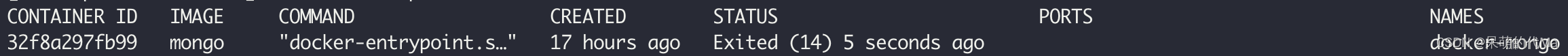 我们想启动name为【docker-mongo】的这个容器,因此要执行